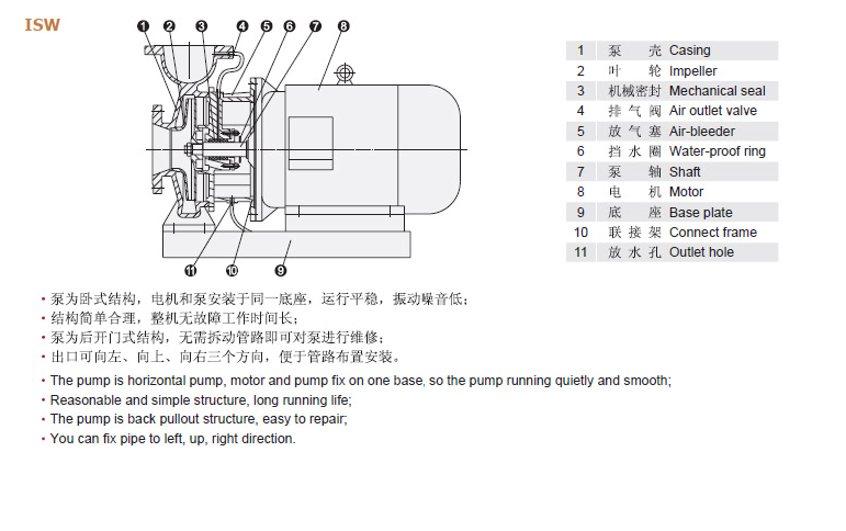 ISW ISWR ISWH单级单吸卧式离心泵概述: